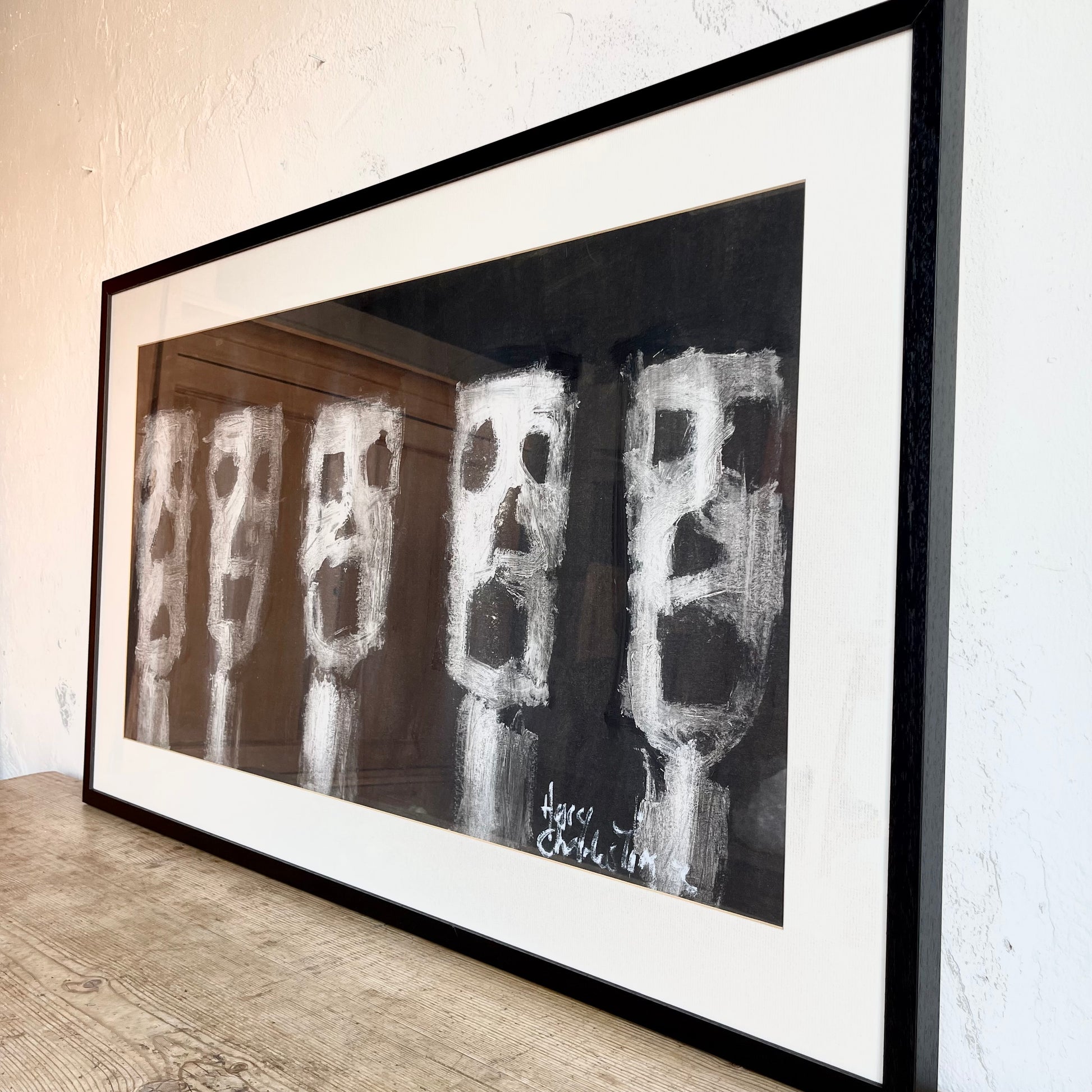 Wooden frame with glass, signed.