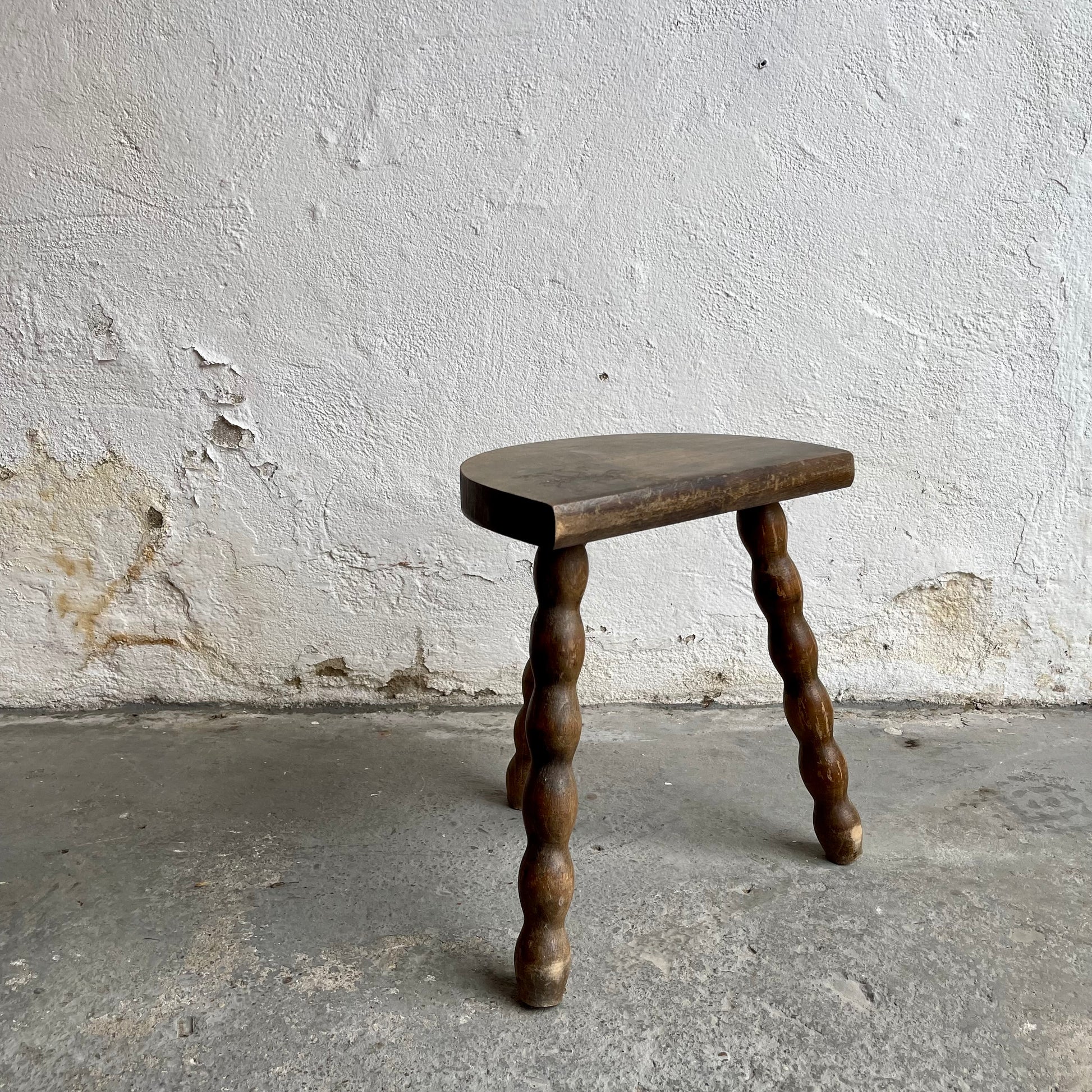 Vintage French stool with bobbin legs. In good used condition.