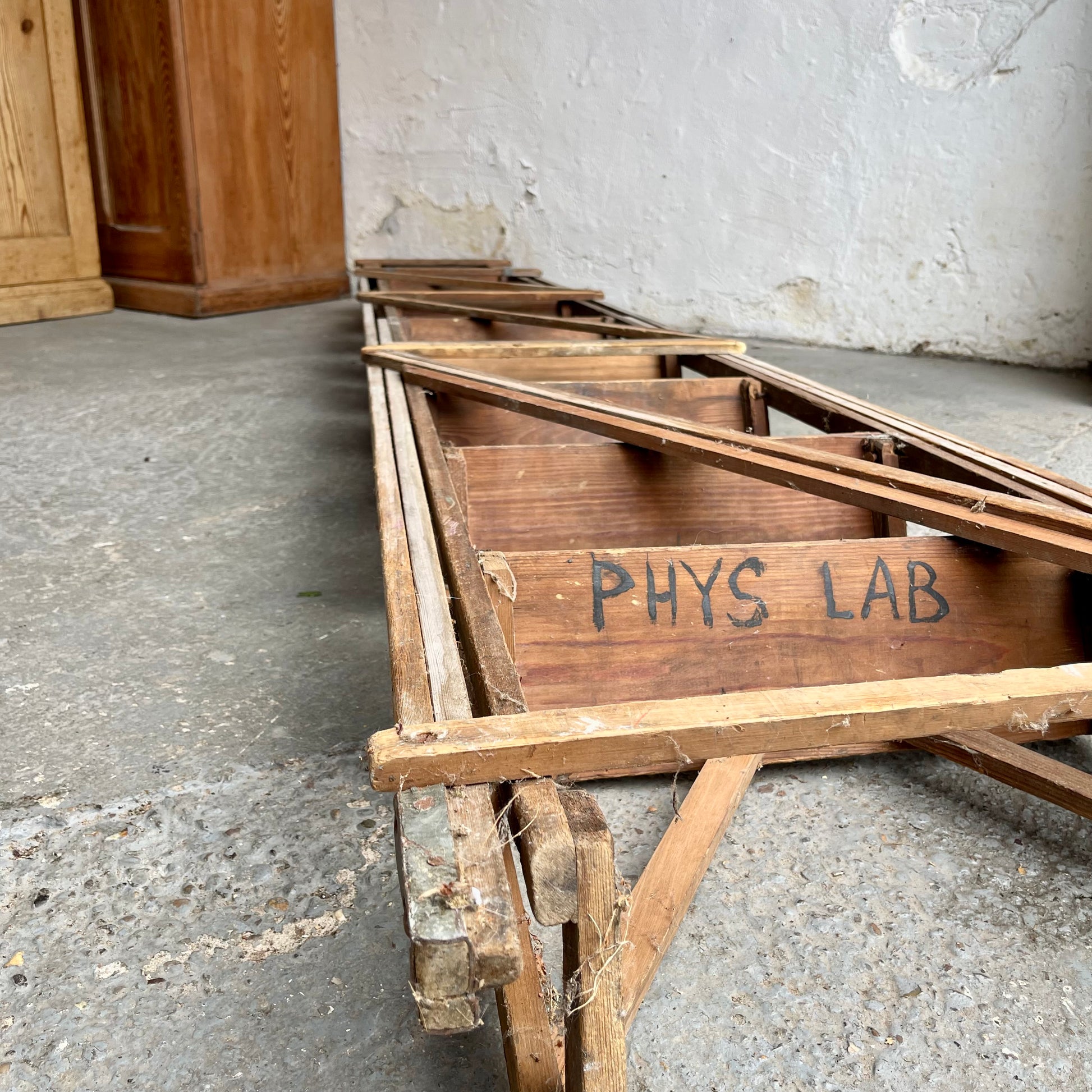 Rescued from a school in Kent & previously housed in the 'PHYS LAB' which is written underneath one of the steps. In good used condition.